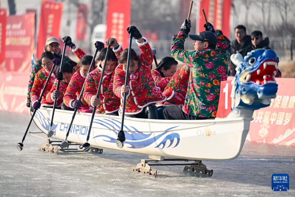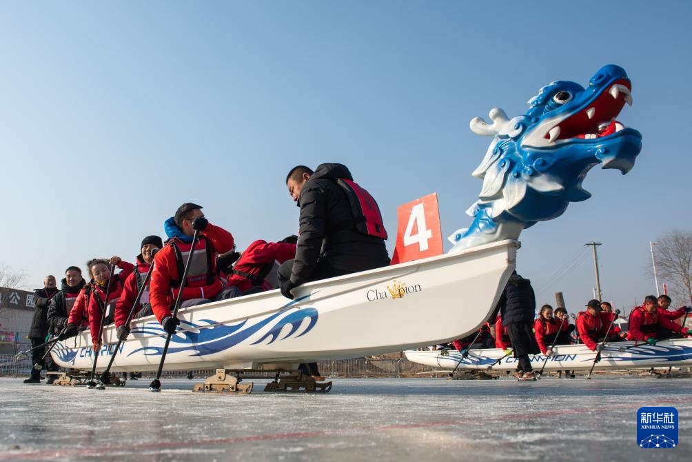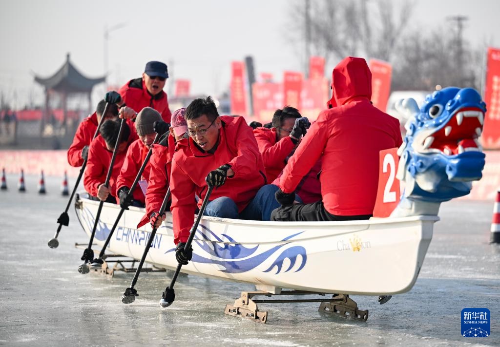 1月13日,市民參加冰上龍舟比賽。新華社記者 李旭倫 攝