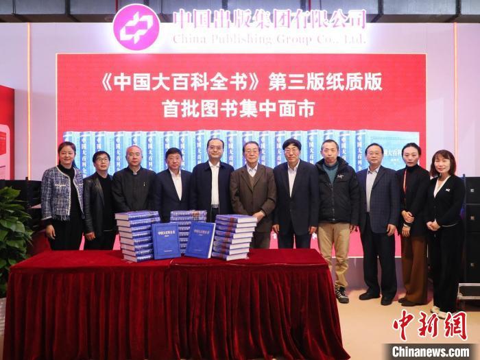 與會(huì)人員共同為《中國(guó)大百科全書》第三版首批紙質(zhì)版圖書揭幕。中國(guó)大百科全書出版社供圖