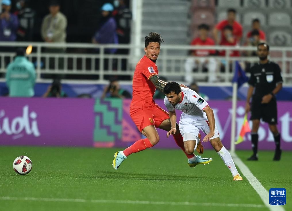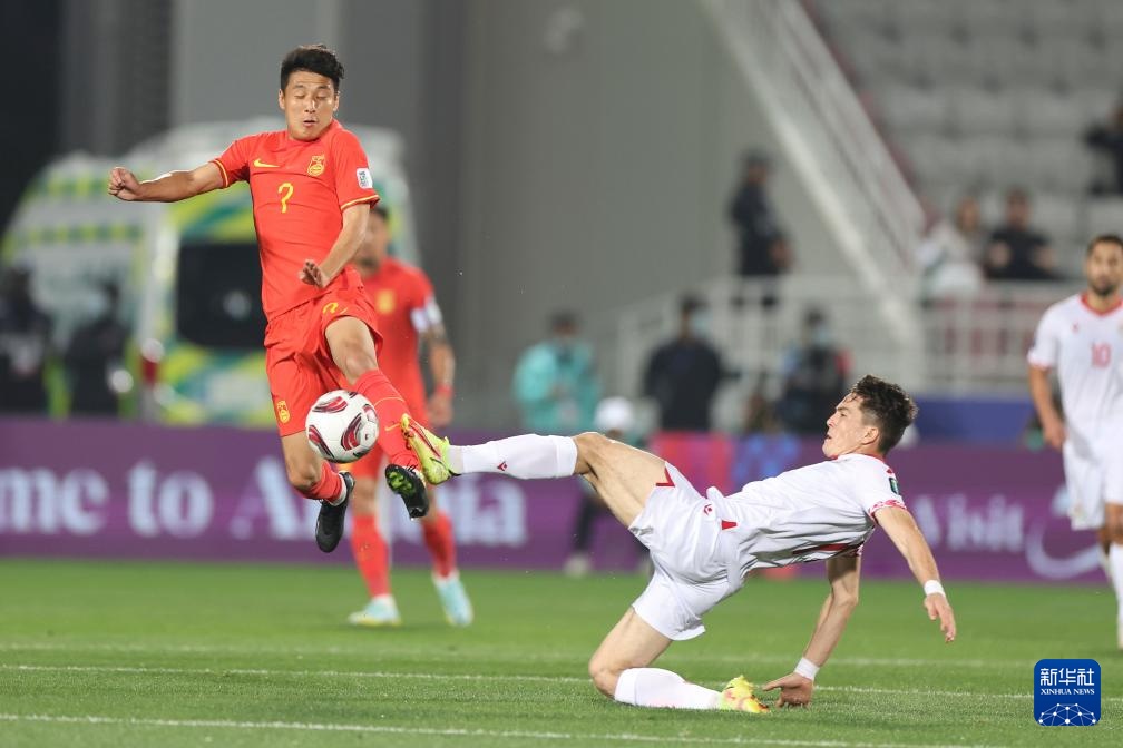 當日,在卡塔爾多哈阿卜杜拉·本·哈里發球場舉行的男足亞洲杯小組賽A組比賽中,中國隊對陣塔吉克斯坦隊。