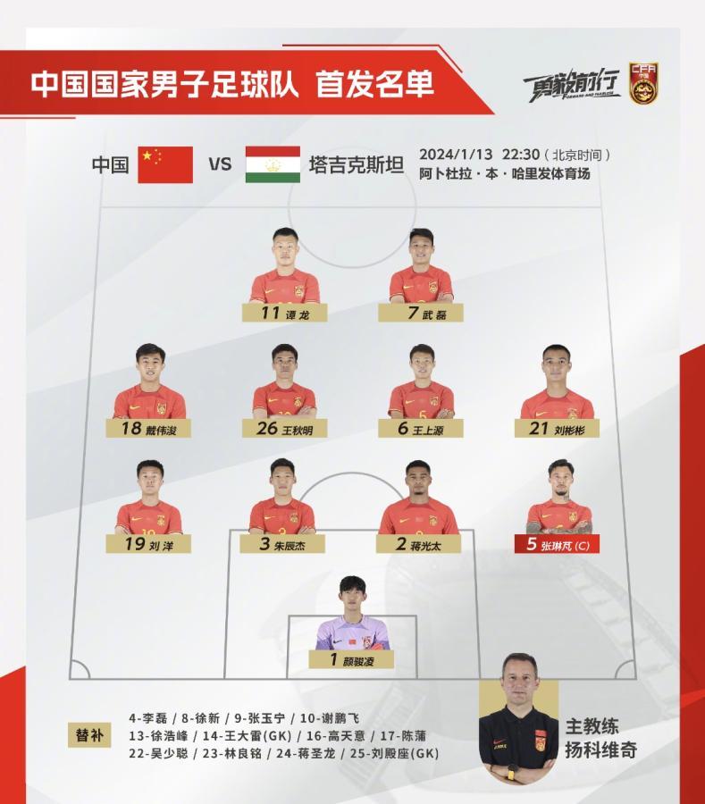 雙前鋒是譚龍和武磊,中場左右兩個邊路分別為戴偉浚、劉彬彬,王上源和王秋明坐鎮中路,后防線上蔣光太與朱辰杰搭檔中后衛,兩邊分別是劉洋和張琳芃,門將顏駿凌。