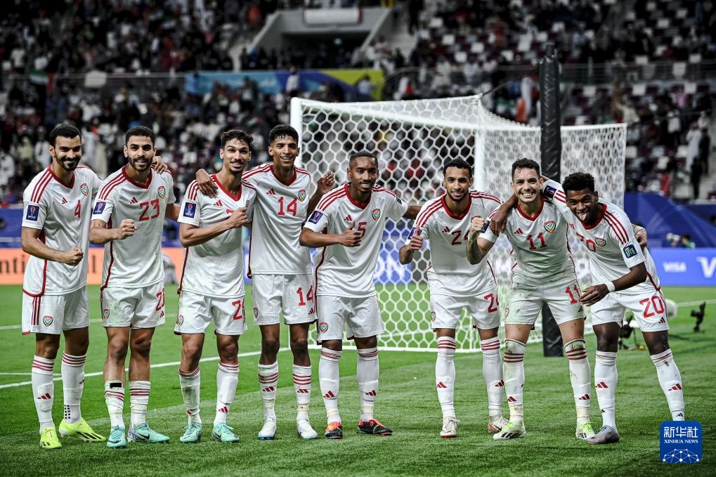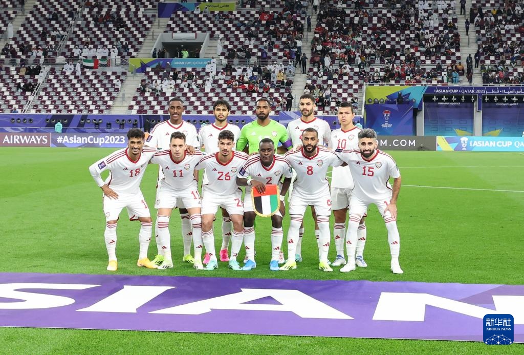 1月14日,阿聯酋隊首發球員在賽前合影。新華社記者 丁汀 攝