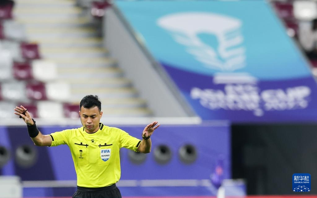 1月14日,主裁判穆罕默德·塔基在比賽中判罰中國香港隊進球無效。新華社記者 丁汀 攝