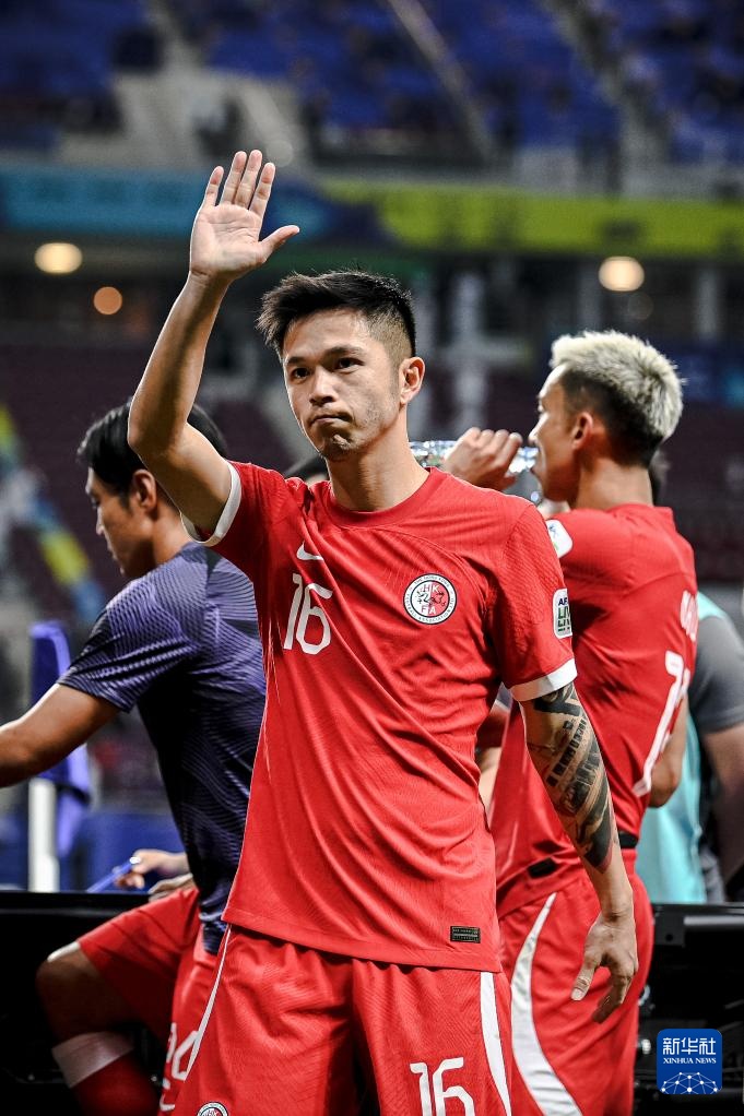 1月14日,中國香港隊球員陳肇鈞在賽后向球迷致意。新華社記者 江漢 攝