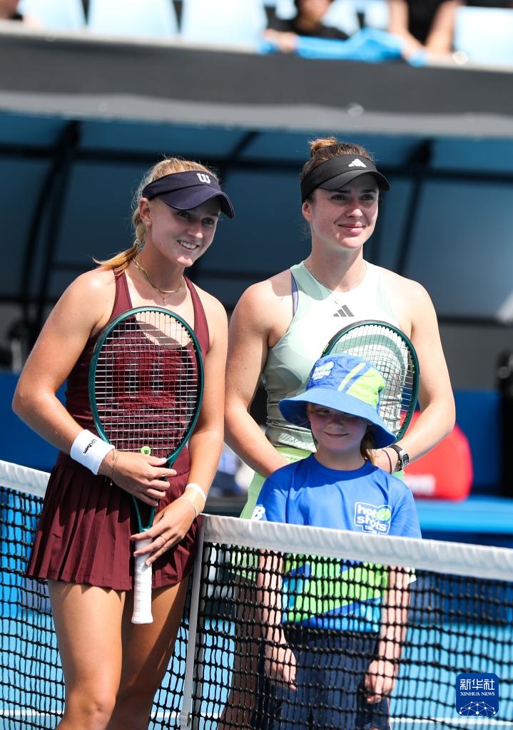 1月15日,斯維托麗娜(右)和普雷斯頓在比賽前合影。新華社記者 馬平 攝