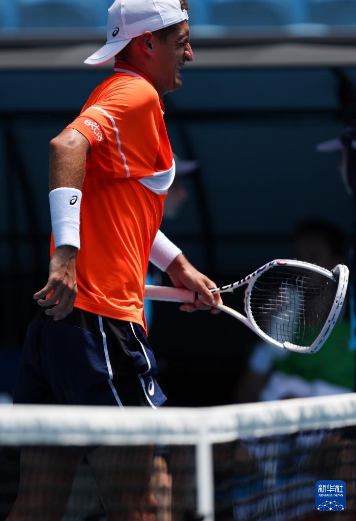 1月15日,阿特馬納因傷退賽,手中握著被他摔壞的球拍。新華社記者 馬平 攝