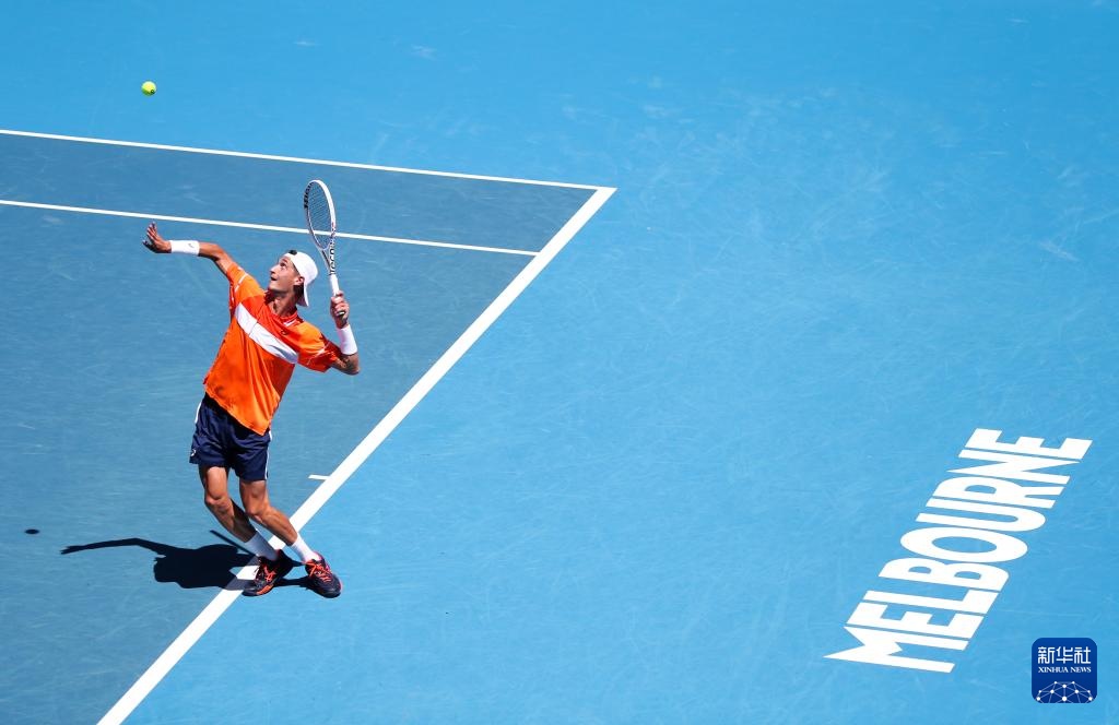 1月15日,阿特馬納在比賽中發(fā)球。新華社記者 馬平 攝