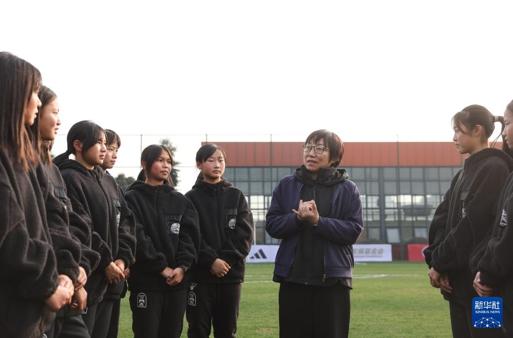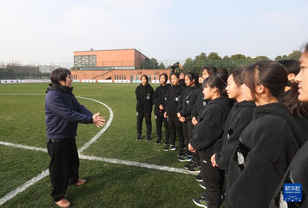 1月15日,中國足球協會副主席孫雯和隊員們交流。新華社記者 江宏景 攝