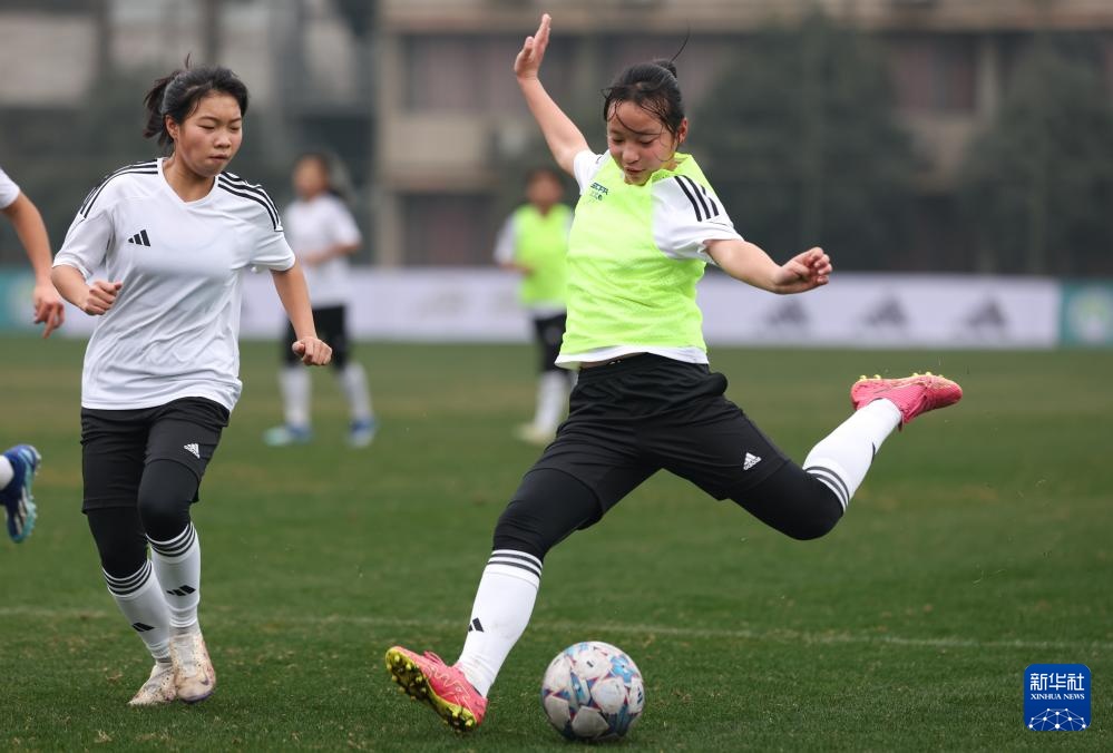 1月15日,來自陜西的U15女足隊員們在成都市溫江足球基地訓練。新華社記者 江宏景 攝