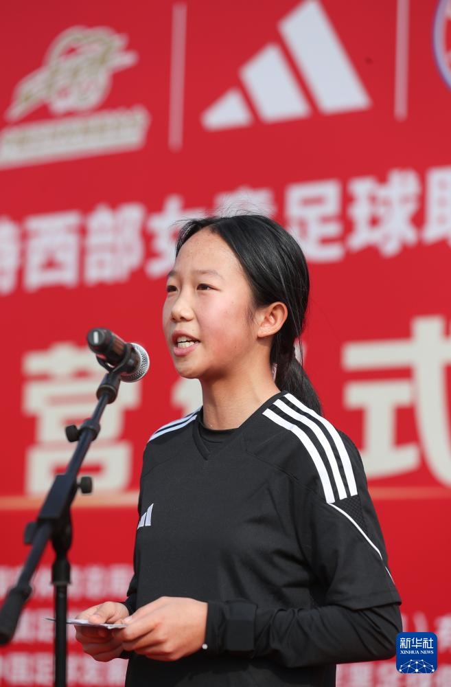 1月15日,球員代表、四川資中體校U15女足隊員王晨西在開營儀式上發言。新華社記者 江宏景 攝