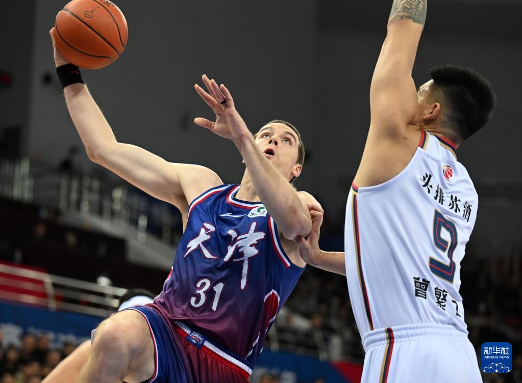 當日,在2023-2024賽季中國男子籃球職業(yè)聯賽(CBA)常規(guī)賽第30輪比賽中,天津先行者隊主場122比104戰(zhàn)勝南京頭排蘇酒隊。