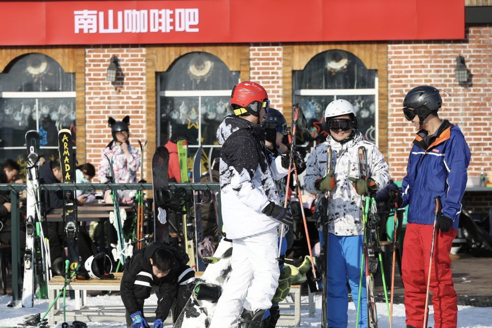 正在交流的北京密云南山滑雪場的游客。新華社記者王婧嬙 攝