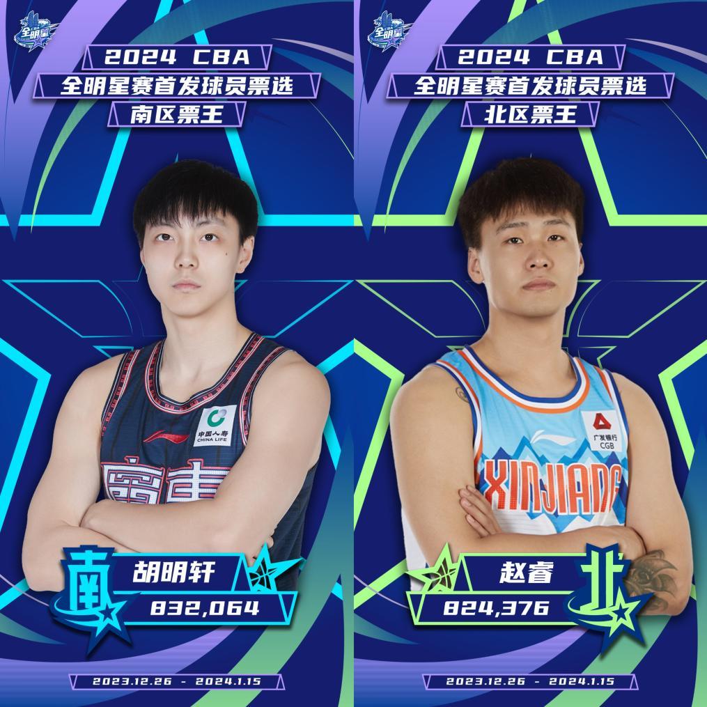 新華社北京1月16日電(記者 林德韌) CBA聯賽16日公布了2024CBA全明星賽首發球員投票結果,廣東隊的胡明軒和新疆隊的趙睿分別當選南、北區“票王”。
