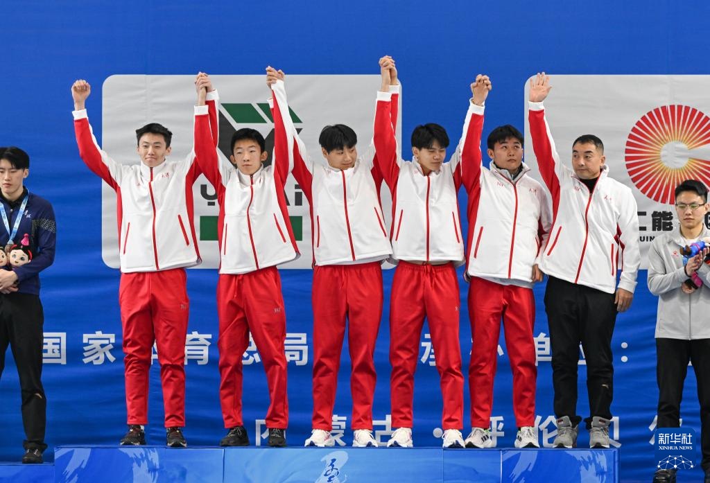 1月17日,獲得金牌的天津隊選手登上領獎臺。新華社記者 劉磊 攝