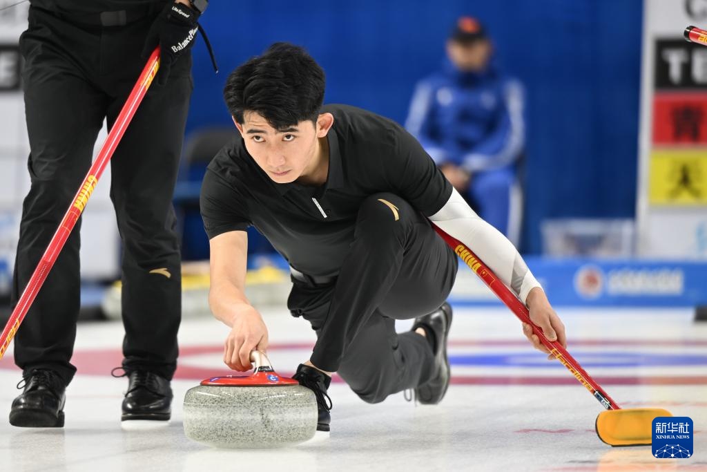 1月17日,天津隊選手王振豪在比賽中擲壺。新華社記者 劉磊 攝