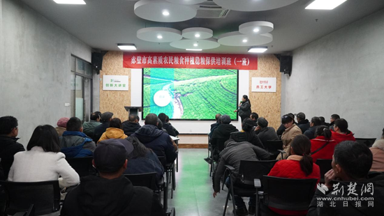 荊楚網(湖北日報網)訊(通訊員賀柳、何雅丹)1月15日,赤壁市高素質農民糧食種植穩糧保供培訓班開班,來自蒲圻街道辦事處的60多名種植大戶和農村創新創業者參加培訓。