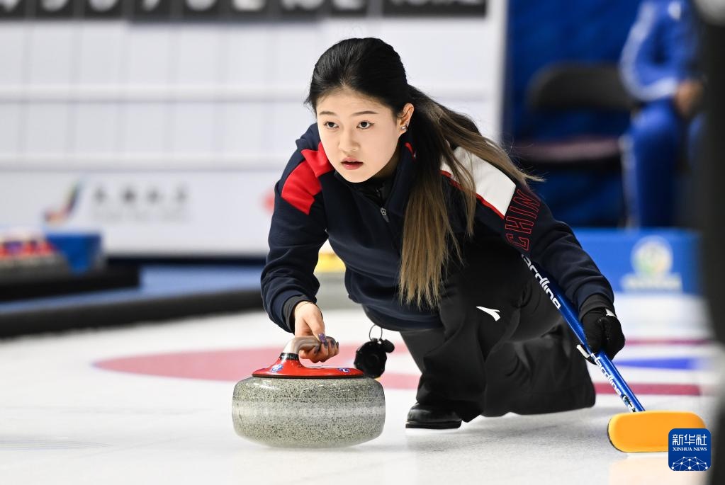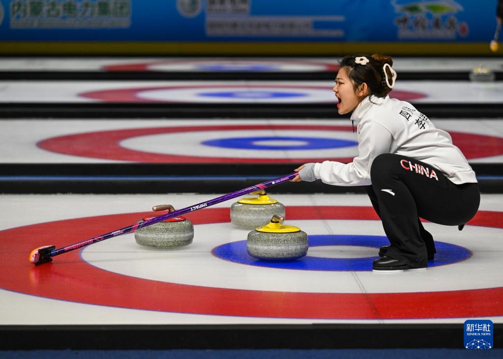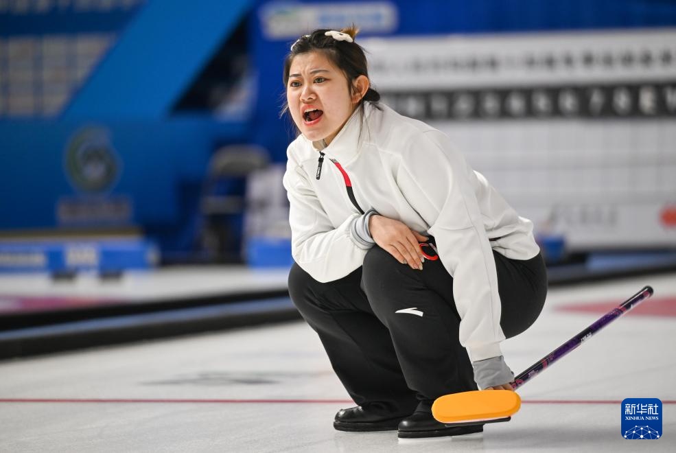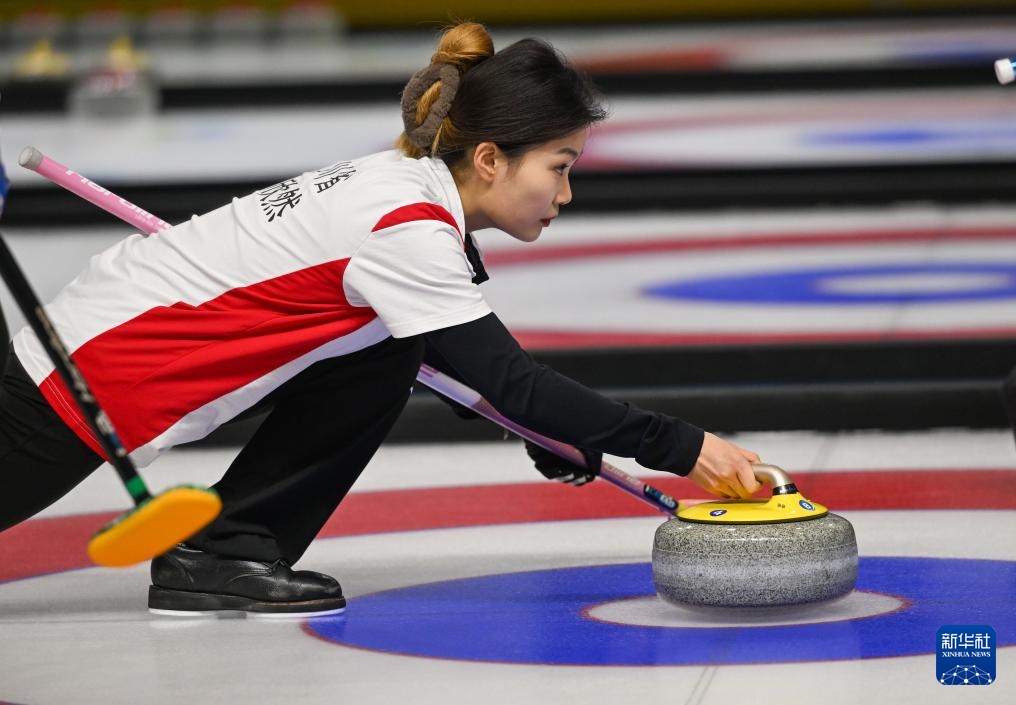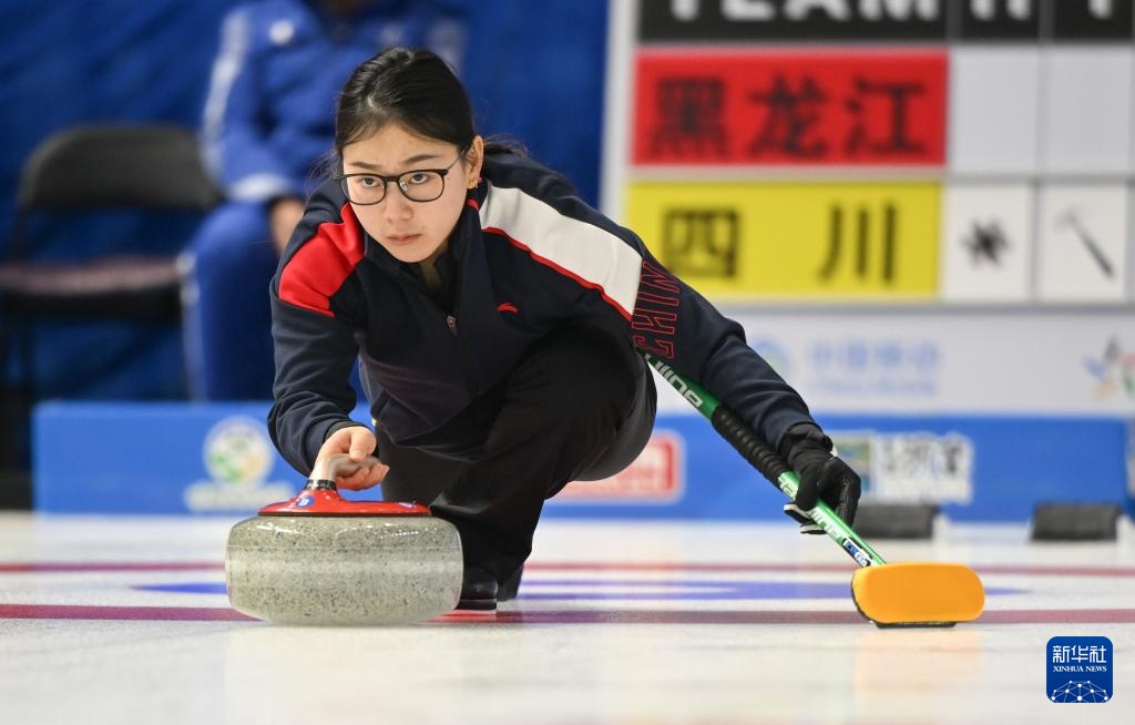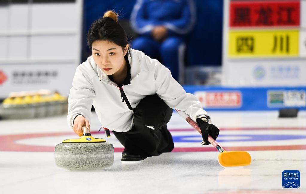 1月17日,黑龍江隊選手文馨悅在比賽中擲壺。新華社記者 劉磊 攝