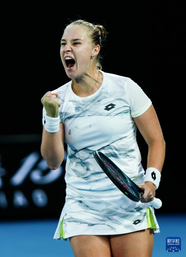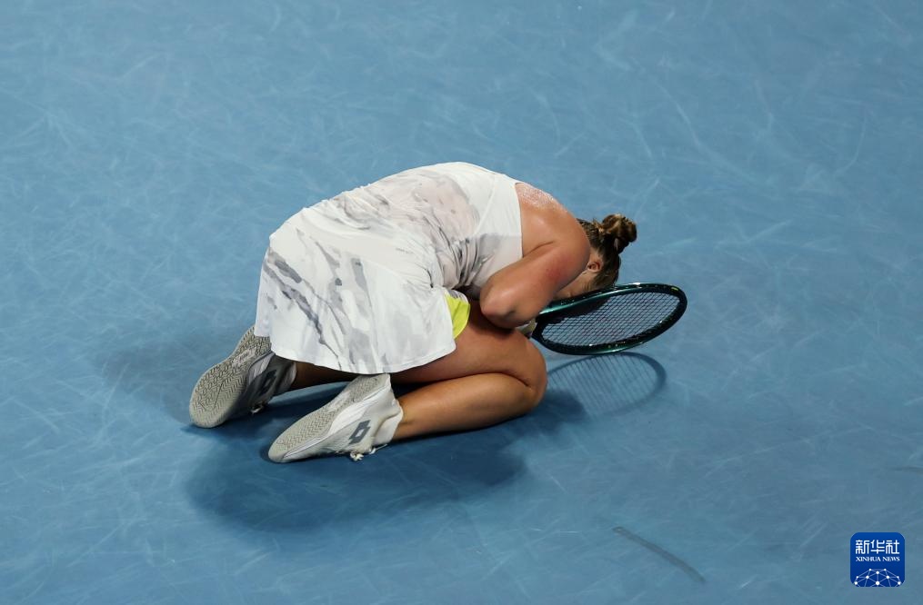 1月18日,布林科娃在獲勝后慶祝。新華社記者 馬平 攝
