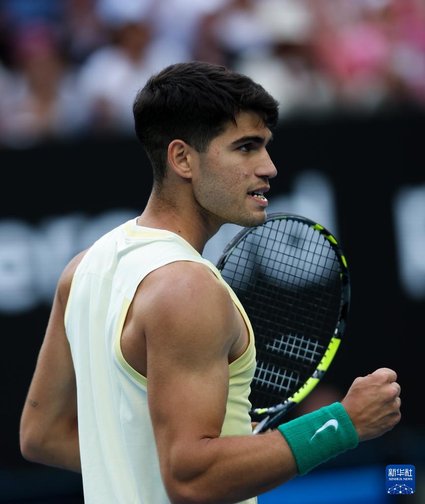 1月18日,阿爾卡拉斯慶祝比賽勝利。新華社記者 馬平 攝