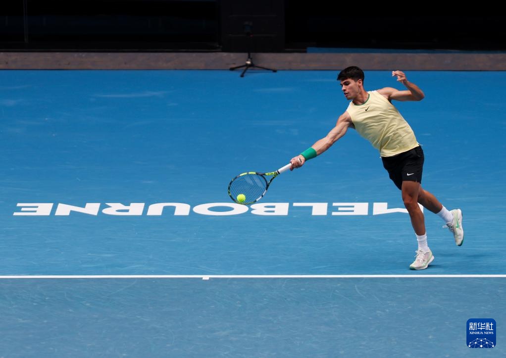 1月18日,阿爾卡拉斯在比賽中回球。新華社記者 馬平 攝