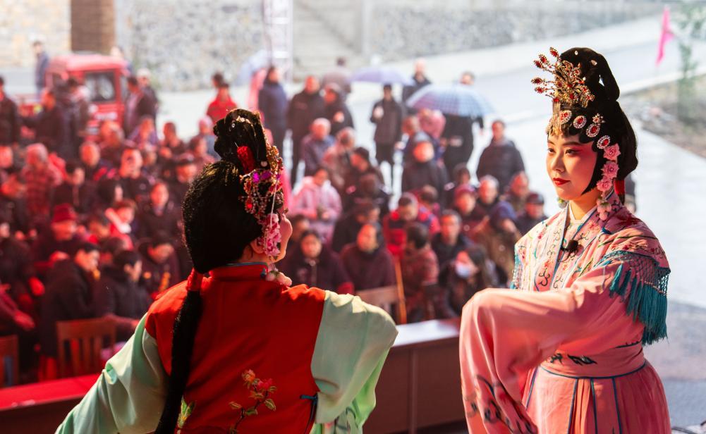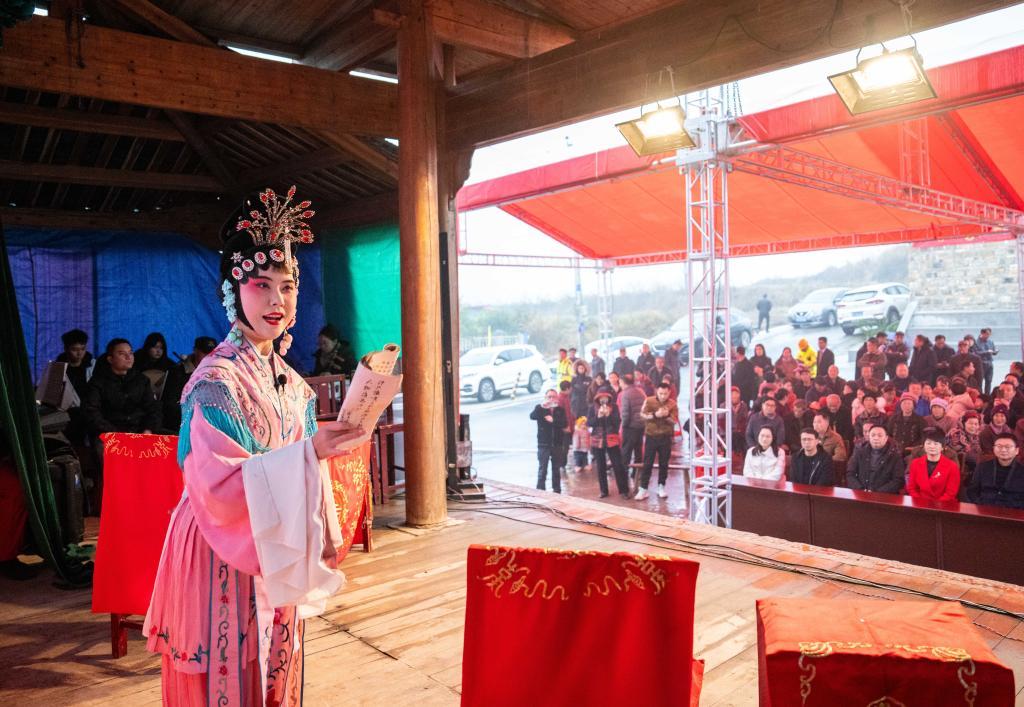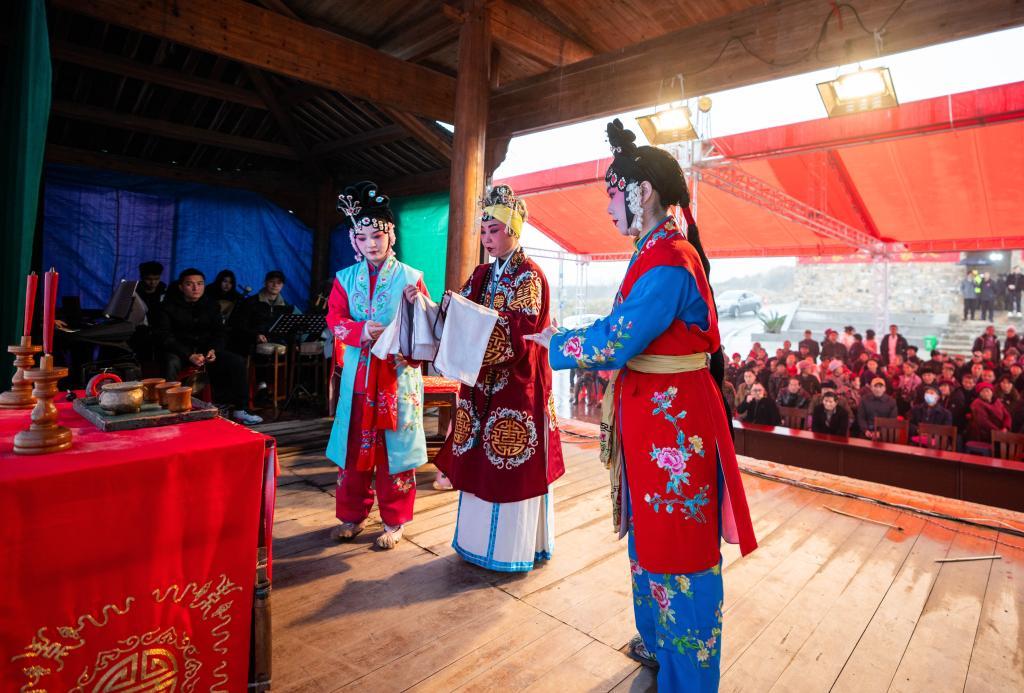 1月15日,演員在伊塘鎮長木塘村表演祁劇《孟麗君》。
