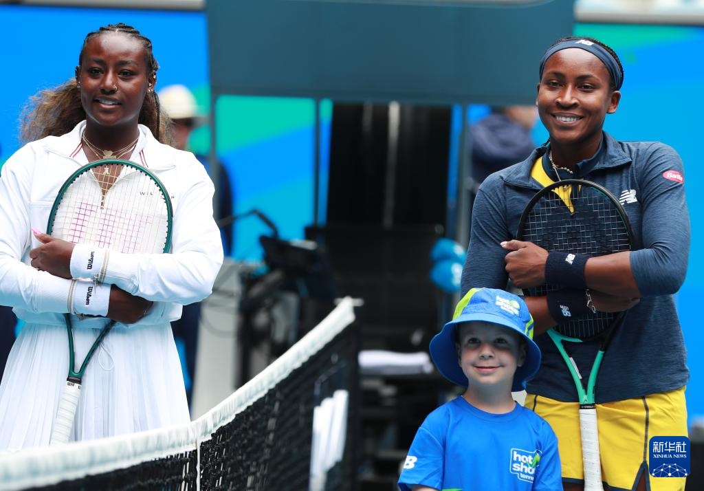 1月19日,高芙(右)與帕克斯(左)在賽前合影。新華社記者 馬平 攝