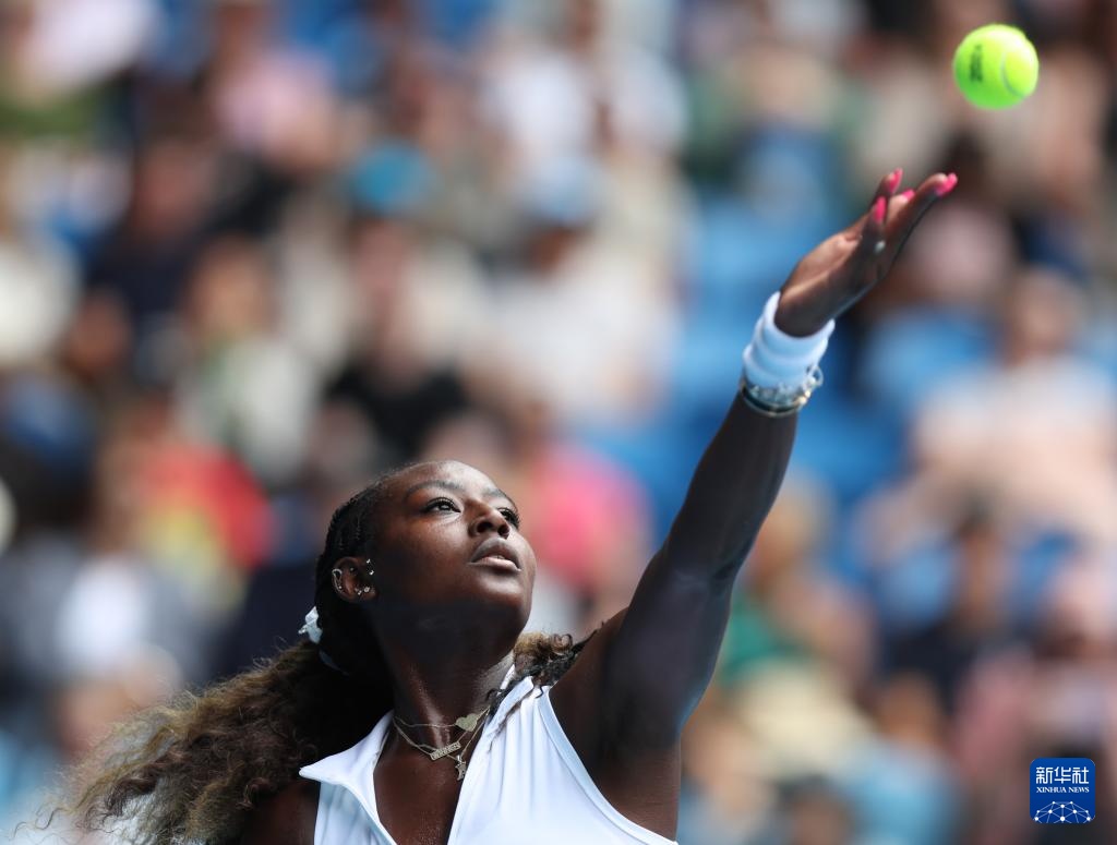 1月19日,高芙在比賽中發球。新華社記者 馬平 攝