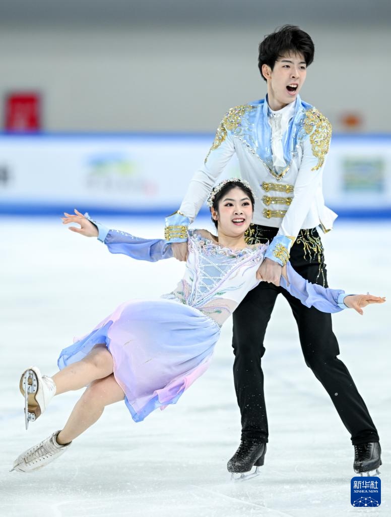 1月19日,四川隊(duì)組合劉桐(右)/葛全朔在冰舞自由舞比賽中。他們以132.67分的總成績獲得青年組冰舞比賽季軍。新華社記者 連振 攝