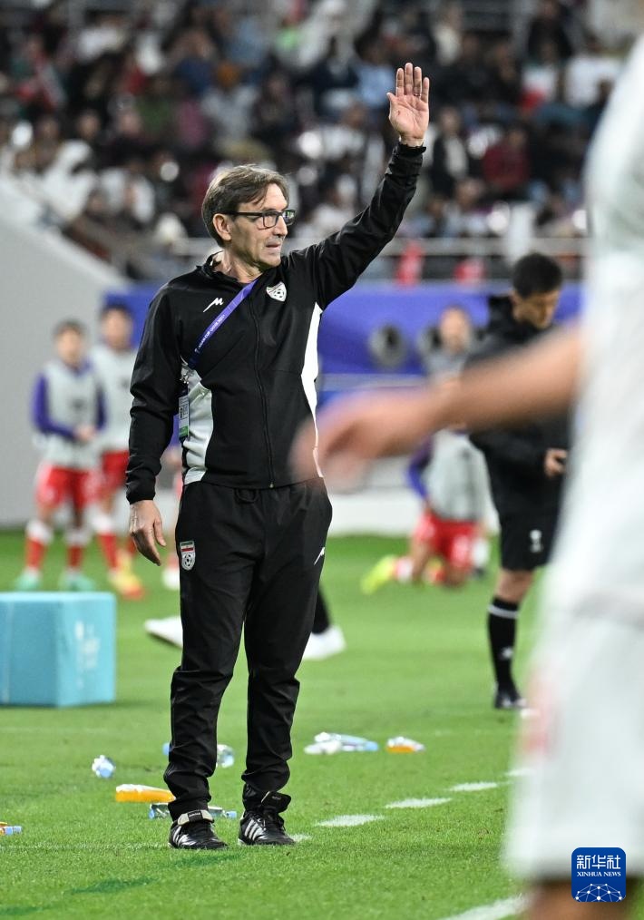 1月19日,伊朗隊(duì)主教練阿爾德希爾·加勒諾伊在比賽中指揮。新華社記者 孫凡越 攝