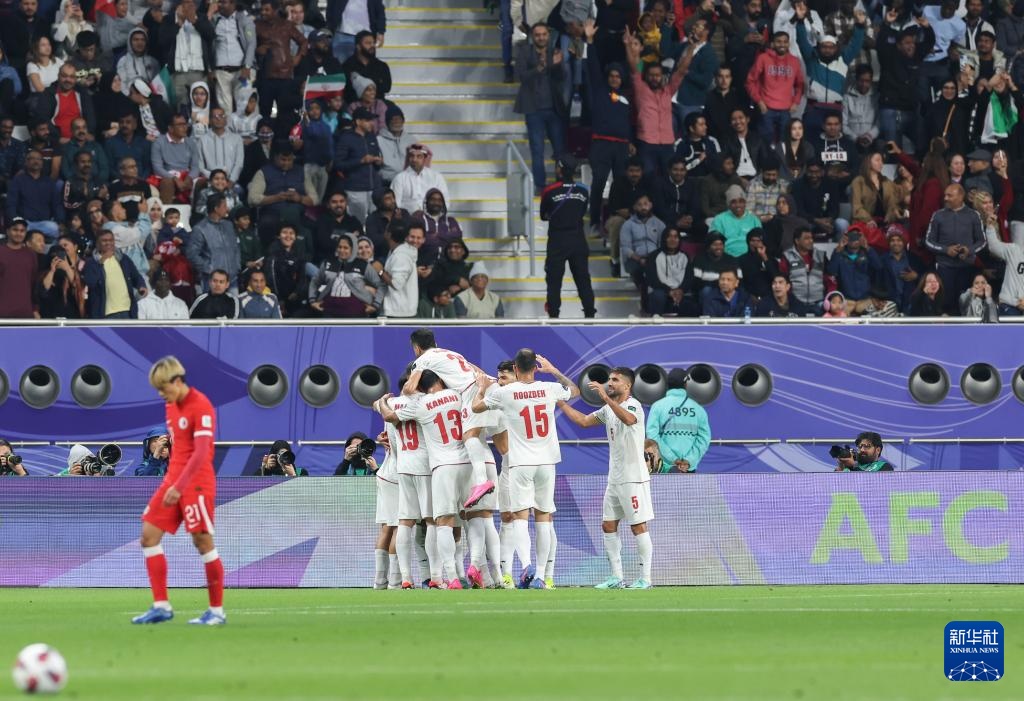 1月19日,伊朗隊(duì)球員進(jìn)球后慶祝。新華社記者 孫凡越 攝