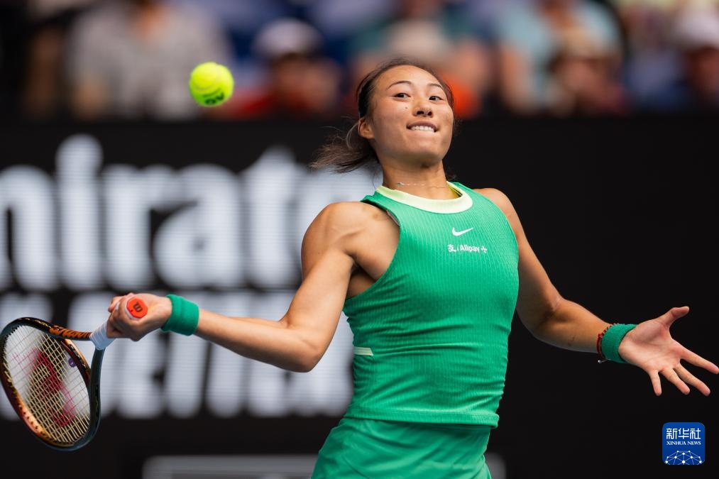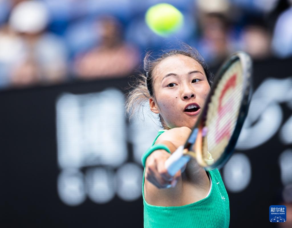 1月20日,鄭欽文在比賽中回球。新華社發(fā)(儲(chǔ)晨攝)