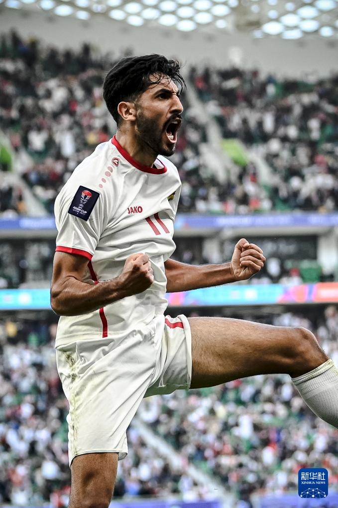 1月20日,約旦隊球員亞贊·奈瑪特在比賽中慶祝進球。新華社記者 江漢 攝