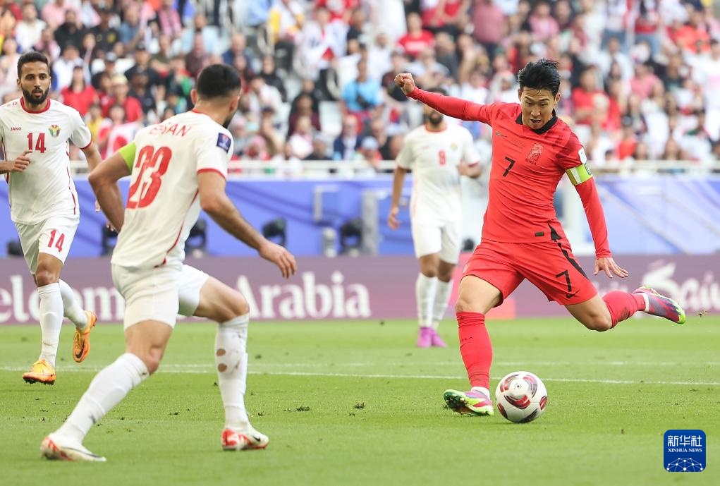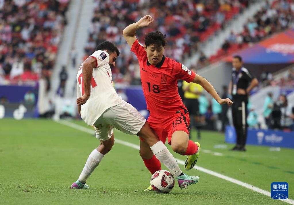 當日,在卡塔爾多哈阿圖瑪瑪球場舉行的男足亞洲杯小組賽E組比賽中,約旦隊對陣韓國隊。