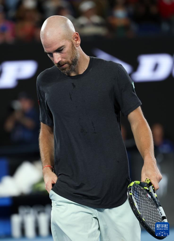 1月21日,曼納里諾在比賽中回球。新華社記者 馬平 攝