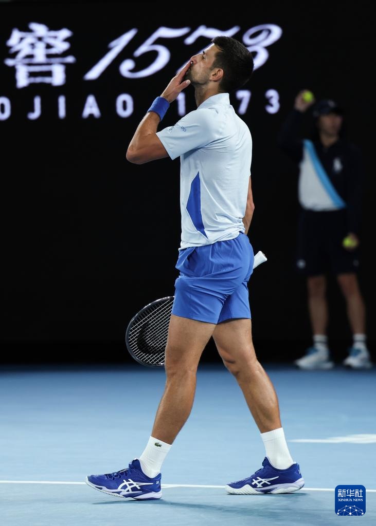 1月21日,焦科維奇慶祝勝利。新華社記者 馬平 攝