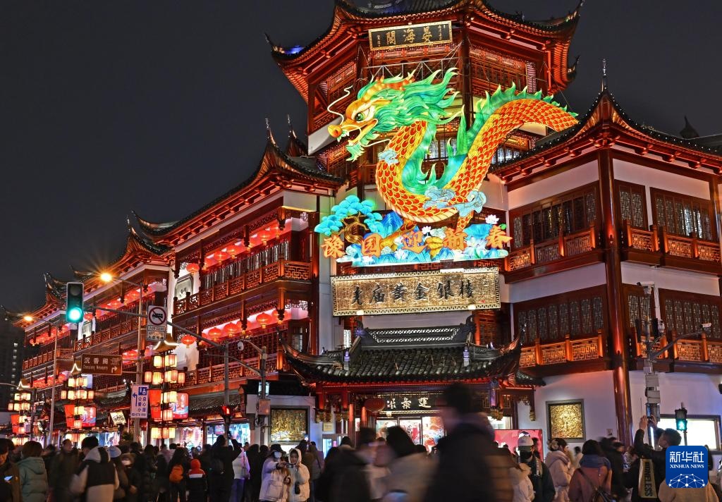 當日,2024上海豫園民俗藝術燈會正式亮燈。今年豫園燈會續寫“山海奇豫記”,以“海經篇”為主題,生肖龍燈、海底世界、魚群起舞、奇幻仙境等場景讓游客在燈火絢爛的國風幻境中喜迎龍年新春。