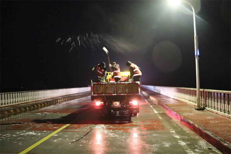此次行動中,養護工人們共計拋灑了4噸融雪劑,有效降低了冰雪對道路交通的影響。