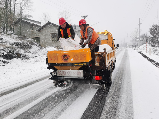 ● 遠安縣S456洋茅線K22+000-K26+000鐵路灣段,積雪有薄冰。