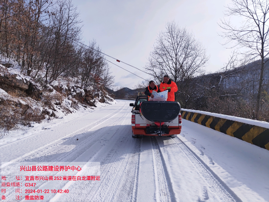 ● G347南德線K1031+119-K1049+000曾家港-九里崗段,積雪有薄冰。
