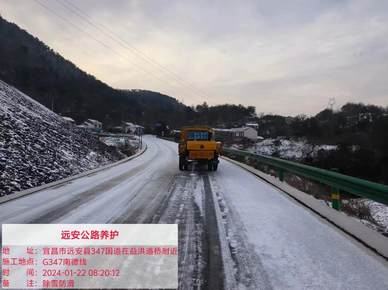 ● 遠安縣G347南德線K1093+000-K1131+331迴馬-楊家溝,積雪有薄冰。
