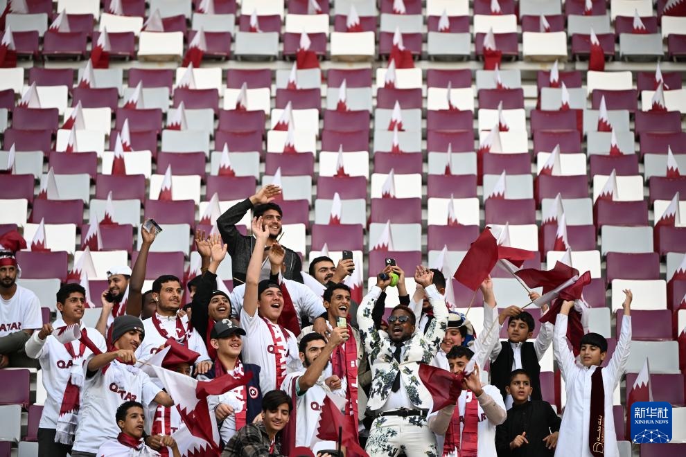 1月22日,卡塔爾隊球迷在看臺助威。新華社記者 孫凡越 攝