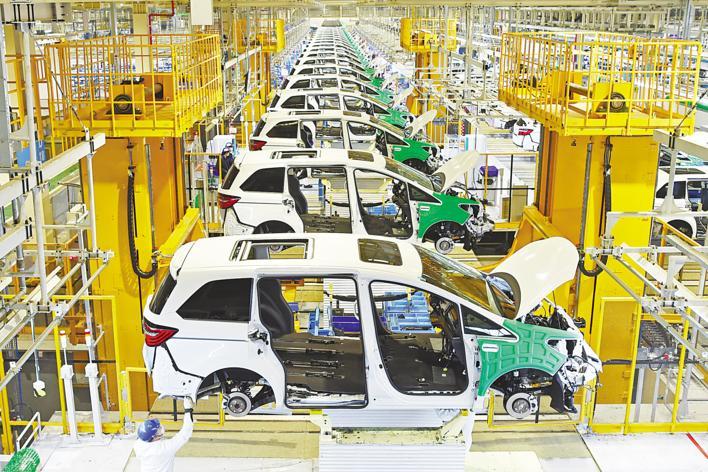 易捷特新能源汽車有限公司總裝車間里,生產線上一派繁忙,每兩分鐘就有一臺新能源汽車下線。