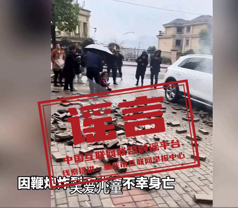 經相關部門核實,1月21日15時42分,重慶市萬州區陳家壩街道南濱上院小區居民黃某(男,9歲)與兩名玩伴(均未受傷)在小區門前空地玩耍時,將點燃的鞭炮丟入地面一下水道內,引燃沼氣掀翻井蓋,造成黃某頭部受傷及旁邊停放的一輛白色小轎車受損。隨后,黃某被送醫治療,已無生命危險。網傳“萬州一女童向污水道投擲鞭炮發生爆炸致一人死亡”信息為不實信息,目前,該視頻已刪除。(來源:“重慶辟謠”微信公眾號)