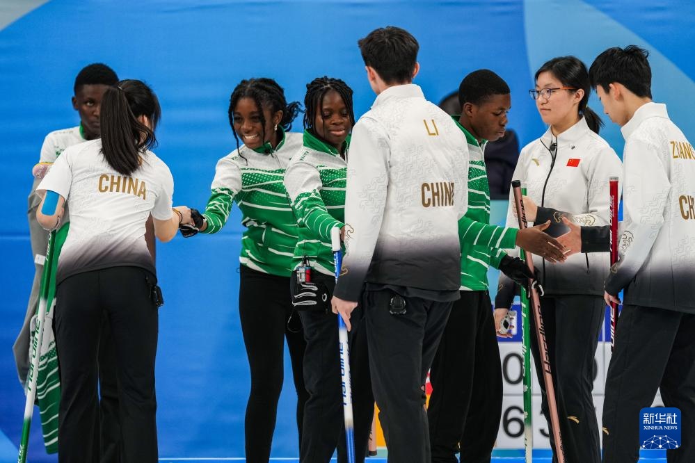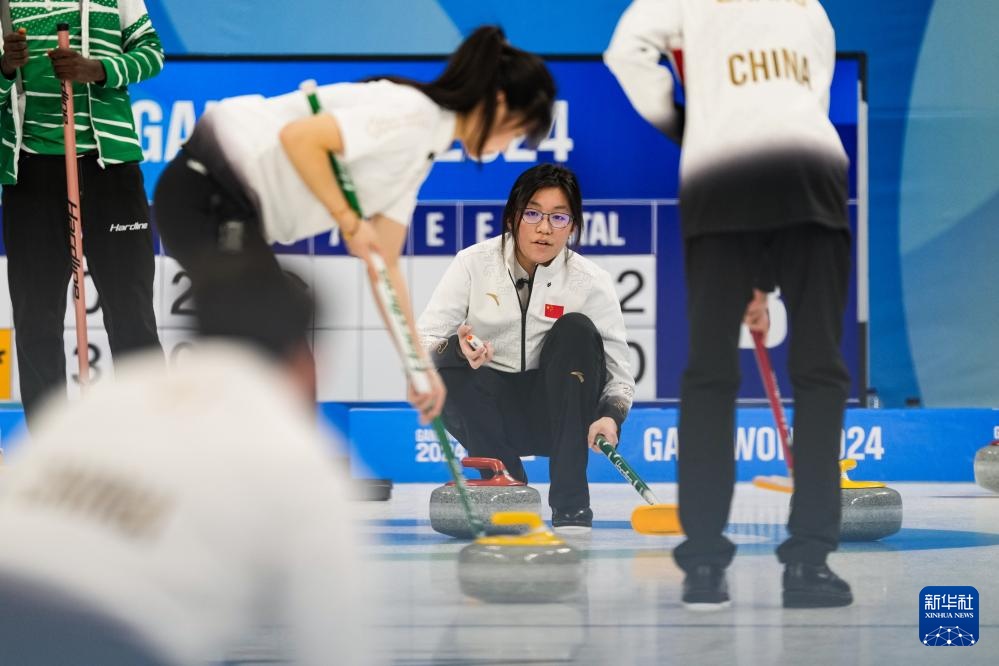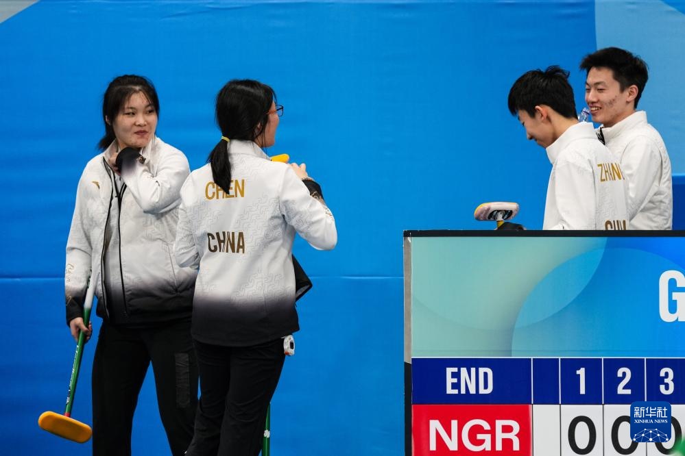 當(dāng)日,在韓國江陵舉行的2024年江原道冬青奧會冰壺混合團(tuán)體循環(huán)賽中,中國隊(duì)22比2戰(zhàn)勝尼日利亞隊(duì)。