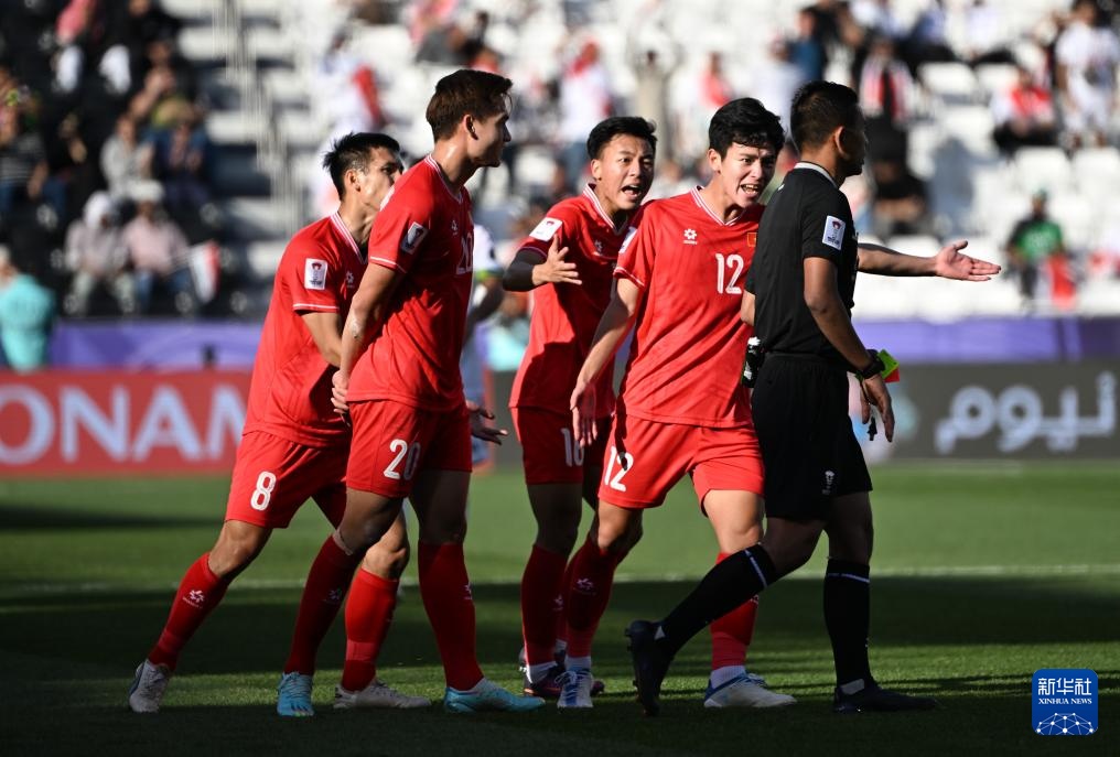 1月24日,越南隊球員對裁判判罰產生質疑。新華社記者 孫凡越 攝