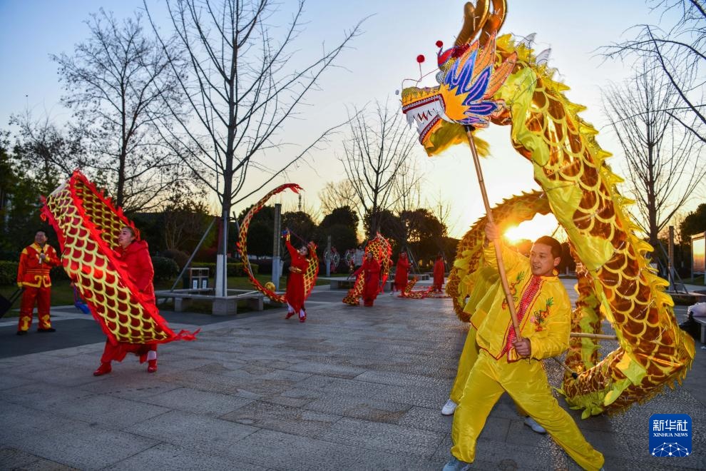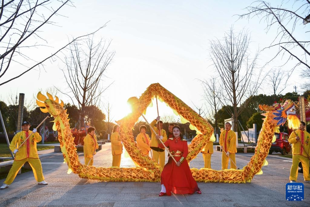 1月23日,在浙江省湖州市吳興區織里鎮利濟文化公園,民間藝人在表演舞龍。