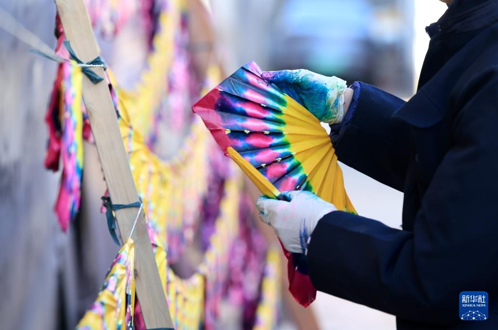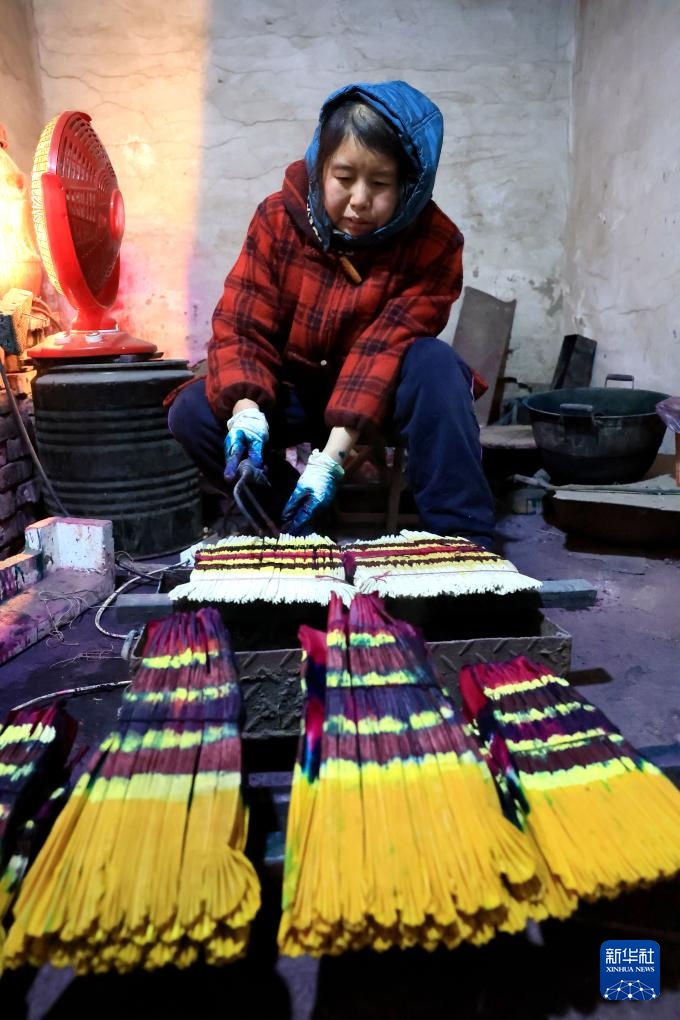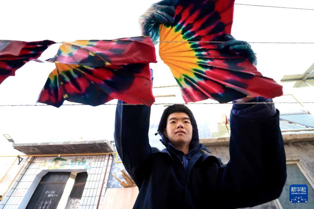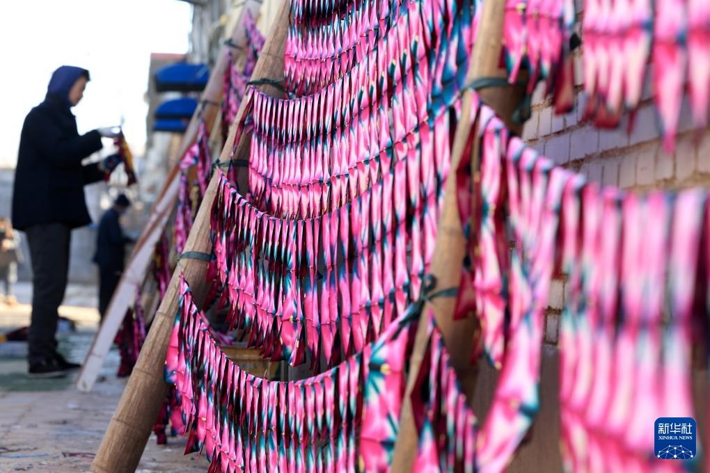 1月24日,在石家莊市欒城區邵家莊村,手工藝人在晾曬彩子。