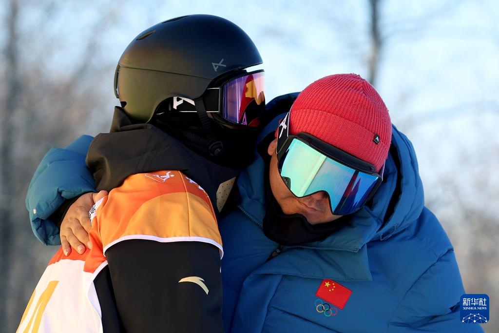 1月25日,葛春宇(左)在出發(fā)前與教練趙俊博擁抱。新華社記者 李明 攝
