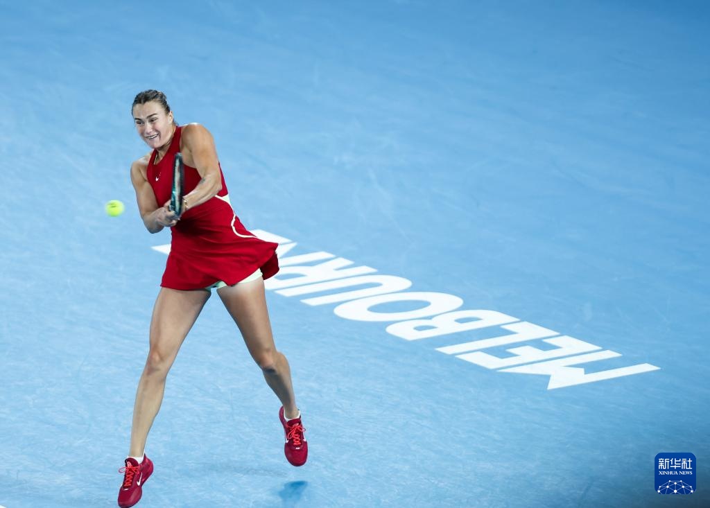 1月25日,薩巴倫卡在比賽中回球。新華社記者 馬平 攝