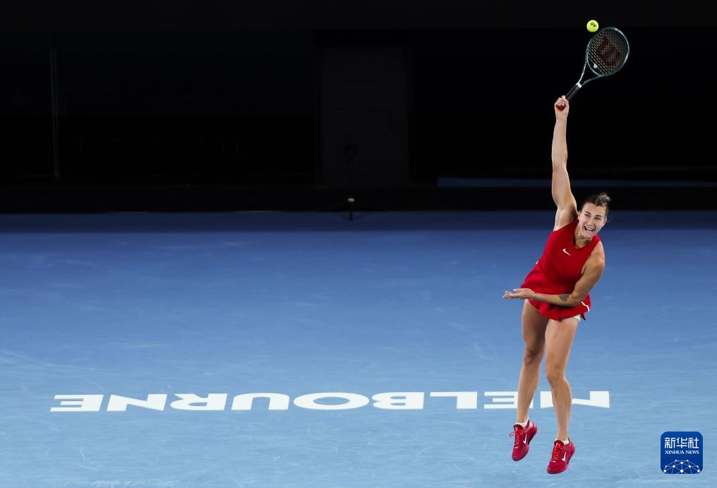 1月25日,薩巴倫卡在比賽中發(fā)球。新華社記者 馬平 攝