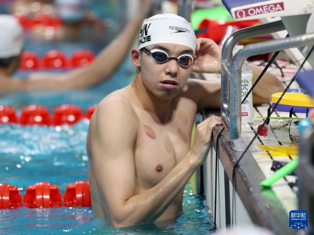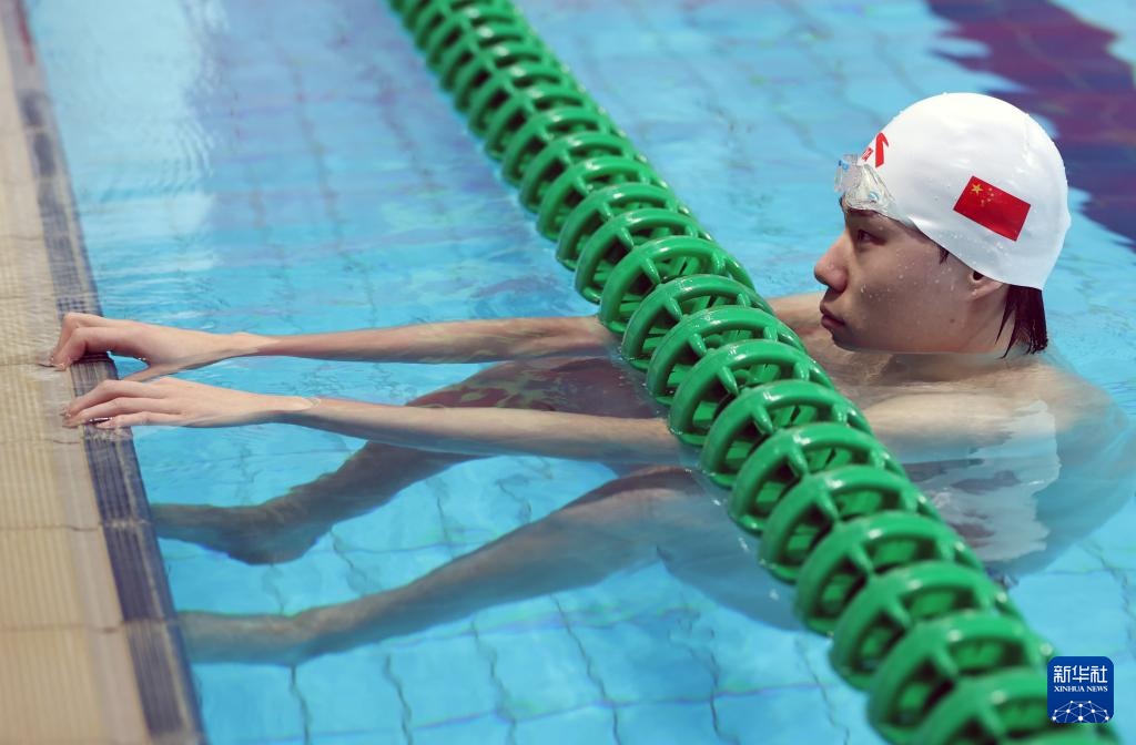 1月25日,中國游泳隊隊員覃海洋在訓練間隙。新華社記者 雒圓 攝